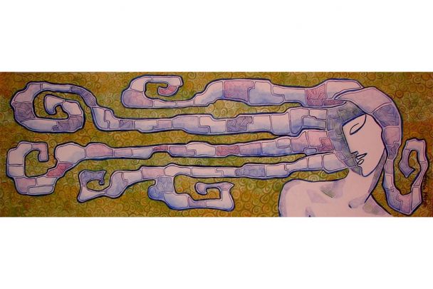 En esta exposición encontramos un trazo de trasfondo: sus damas delicadas y mágicas son, al mismo tiempo, mujeres luchadoras que siguen creciendo desde la fuerza y el coraje; mujeres que reflexionan sobre la importancia de ser una misma mirando a un girasol, o que nos trasmiten serenidad. Su "línea" define las formas, crea las imágenes y los conceptos, trata de resolver los rostros, de dibujar las facciones o de abrirnos y cerrarnos el mundo, y su pintura, por medio de espirales.