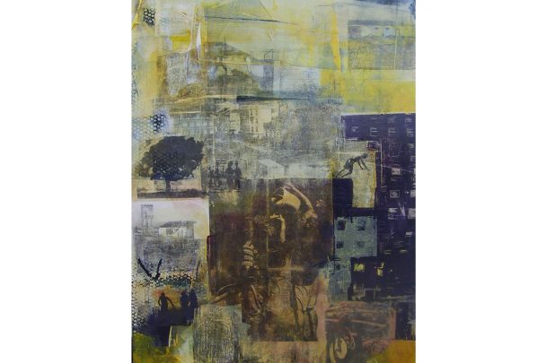 En su trabajo combina varias técnicas -espátula, impresión, serigrafía, óleo- para crear una pintura donde es posible encontrar diferentes “capas” de elementos visuales que juegan, entre sí, de manera desconcertante.