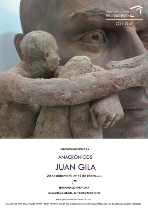 El próximo sábado 20 de diciembre, a las 18:30 horas, inauguramos en la Galería de Arte María Nieves Martín “Anacrónicos”, del artista extremeño Juan Gila. Se trata de la última exposición de la Galería en este especial 2014, y una nueva apuesta de nuestro espacio, también, por la escultura y el arte made in Extremadura.