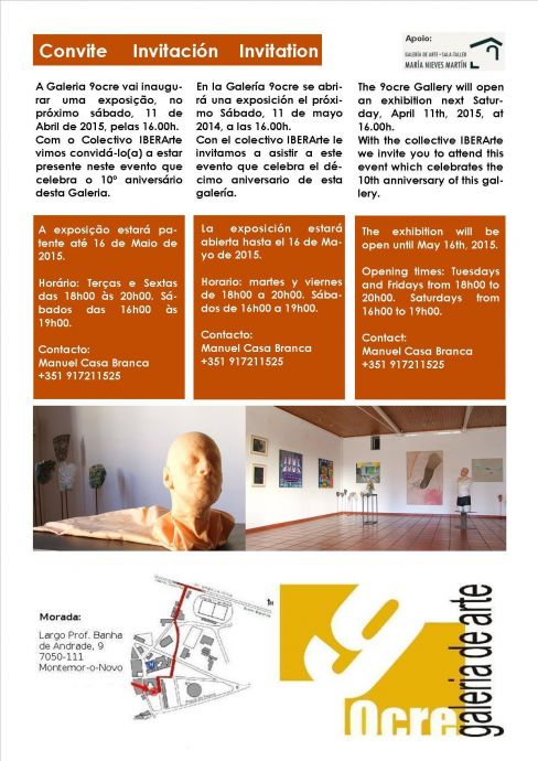 La inauguración tendrá lugar este sábado 11 de abril, a las 17:00 horas (16:00 horas en Portugal), y podremos disfrutar de obras construidas a partir de la pintura, la escultura, la fotografía, el grabado y la instalación. IBERArte se podrá visitar hasta el día 16 de mayo, y los horarios son: martes y viernes de 19 a 21 horas, y sábados de 17 a 20 horas, en la Galería 9Ocre de Montemor-O-Novo, Portugal.